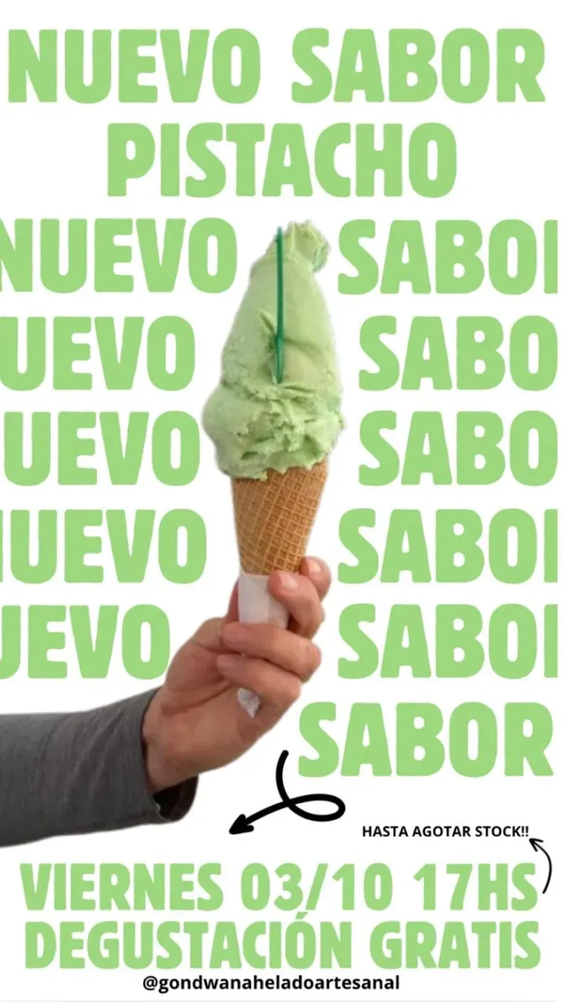 Todos aquellos interesados en probar el nuevo pistacho pueden acercarse el próximo viernes a las 17 a la heladería Gondwana en pleno corazón de Pilar.
