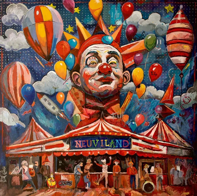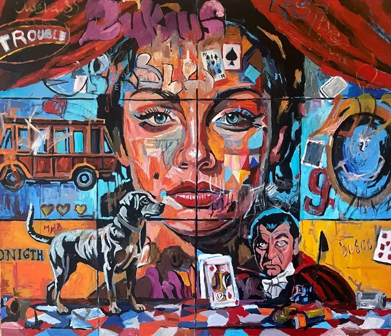 El trabajo de Fran Neuville fusiona elementos figurativos con gestos impresionistas y surrealistas. Sus composiciones estratificadas incorporan fragmentos, escenas nocturnas y distorsión expresiva. Las pinturas no intentan representar una identidad estable: revelan transición.