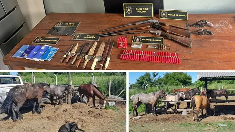 En los otros operativos, fueron capturados tres malvivientes y se hallaron tres escopetas y un revolver, una importante cantidad de municiones, seis teléfonos celulares, elementos de montura, otros tres batanes para movilizar animales y la recuperación de otros 12 equinos.