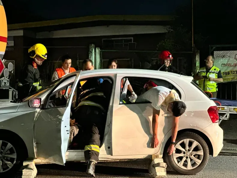 Bomberos Voluntarios, Defensa Civil, SAME y Autopistas del Sol, están llevando a cabo un simulacro de accidente en la Colectora de Panamericana, entre la calle Rivadavia y la Avenida Tratado del Pilar. La situación planteada es la de un accidente de tránsito entre un camión que transporta combustible y un vehículo, en el que dos personas quedaron atrapadas.