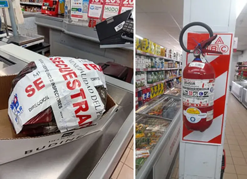 También detectaron falta de análisis fisicoquímico y bacteriológico del agua, tableros eléctricos sin protección, nichos hidrantes obstruidos y dañados, extintores obstruidos, instalación eléctrica deficiente, falta de conforme de bomberos vencidos, rejillas obstruidas y con acumulación de residuos, salidas de emergencias obstruidas y refrigeración insuficientes en productos con cadena de frío.