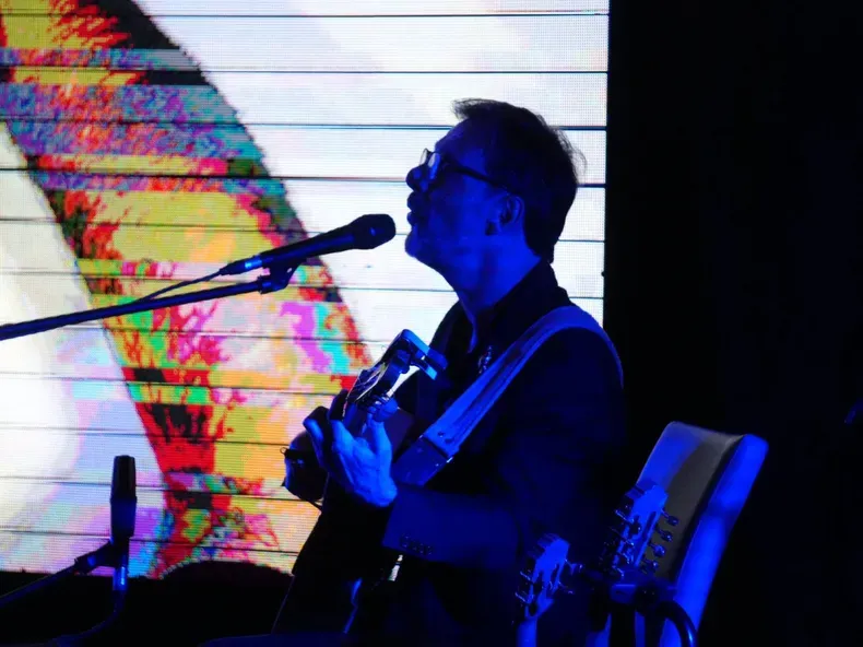 El músico y el dibujante trajeron su espectáculo, que fusiona música en vivo e ilustración en tiempo real, donde mientras Kevin recorre lo mejor de su repertorio -con clásicos y canciones nuevas-, Liniers improvisa dibujos que se proyectan en el escenario, creando una puesta tan original como emotiva.