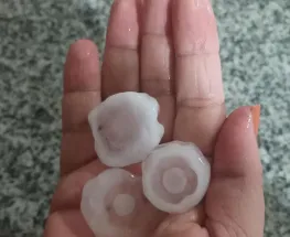 Clima Intensa caída de granizo durante la madrugada en Pilar El fenómeno se produjo cerca de las 2.30 y duró unos 5 minutos. En algunos casos el tamaño del granizo alcanzó el de una pelota de ping-pong. Granizo Materia Prima - via ModLayer